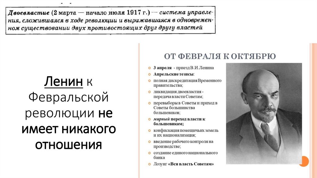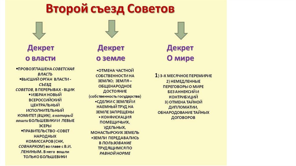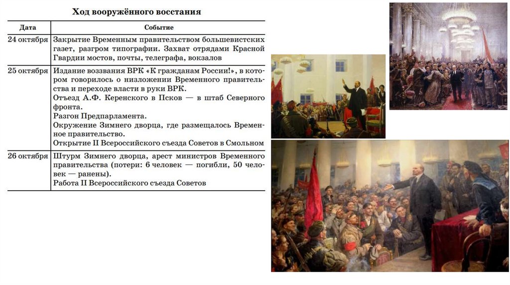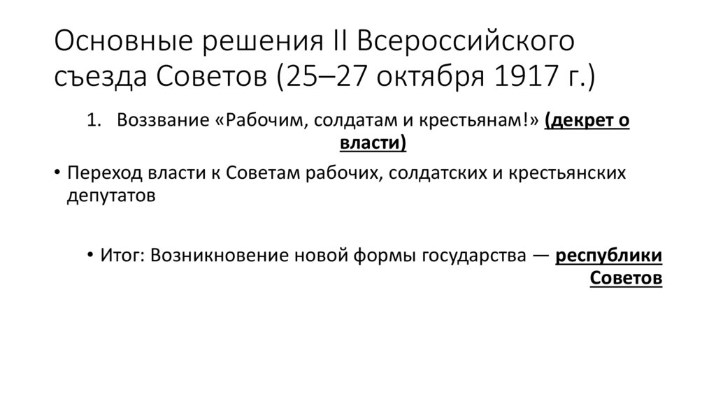 • Переход власти к Советам рабочих, солдатских и крестьянских