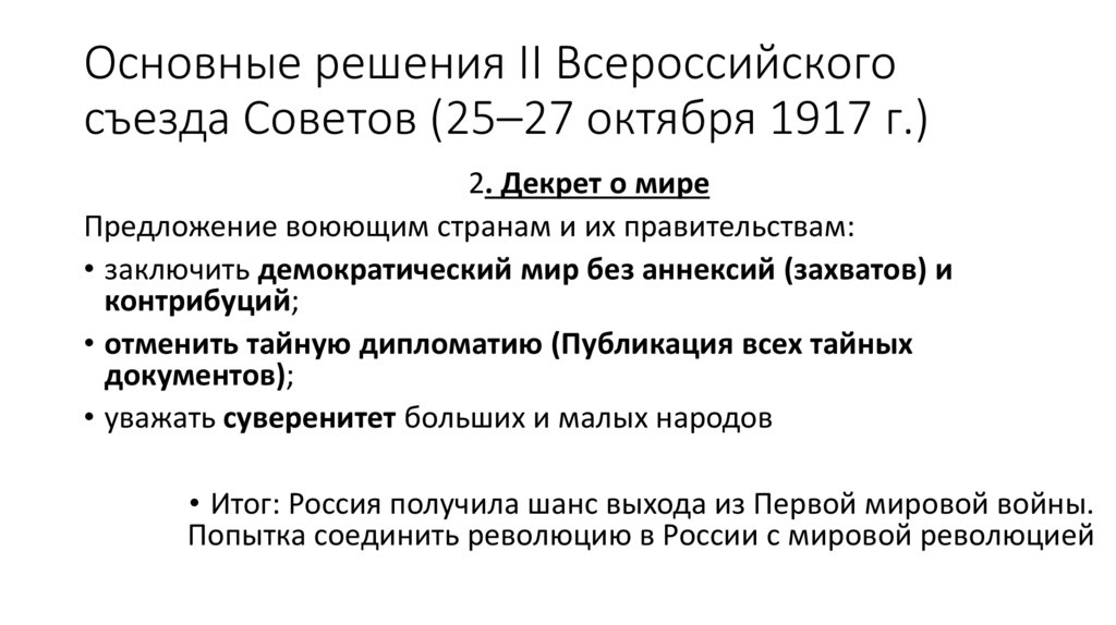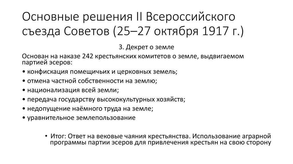 Основные решения II Всероссийскогосъезда Советов (25–27 октября 1917 г.)