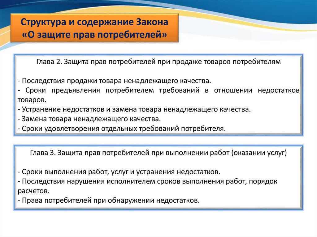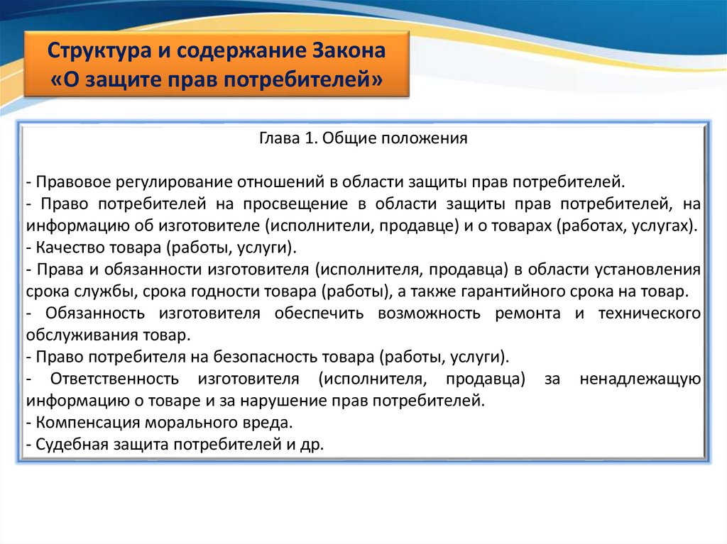 Структура и содержание Закона«О защите прав потребителей»