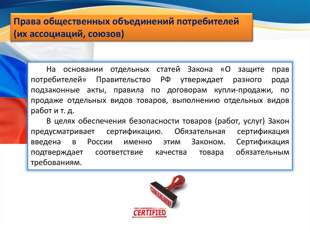 Права общественных объединений потребителей(их ассоциаций, союзов)