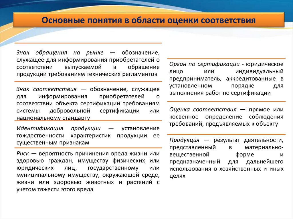 Основные понятия в области оценки соответствияЗнак обращения на рынке — обозначение,