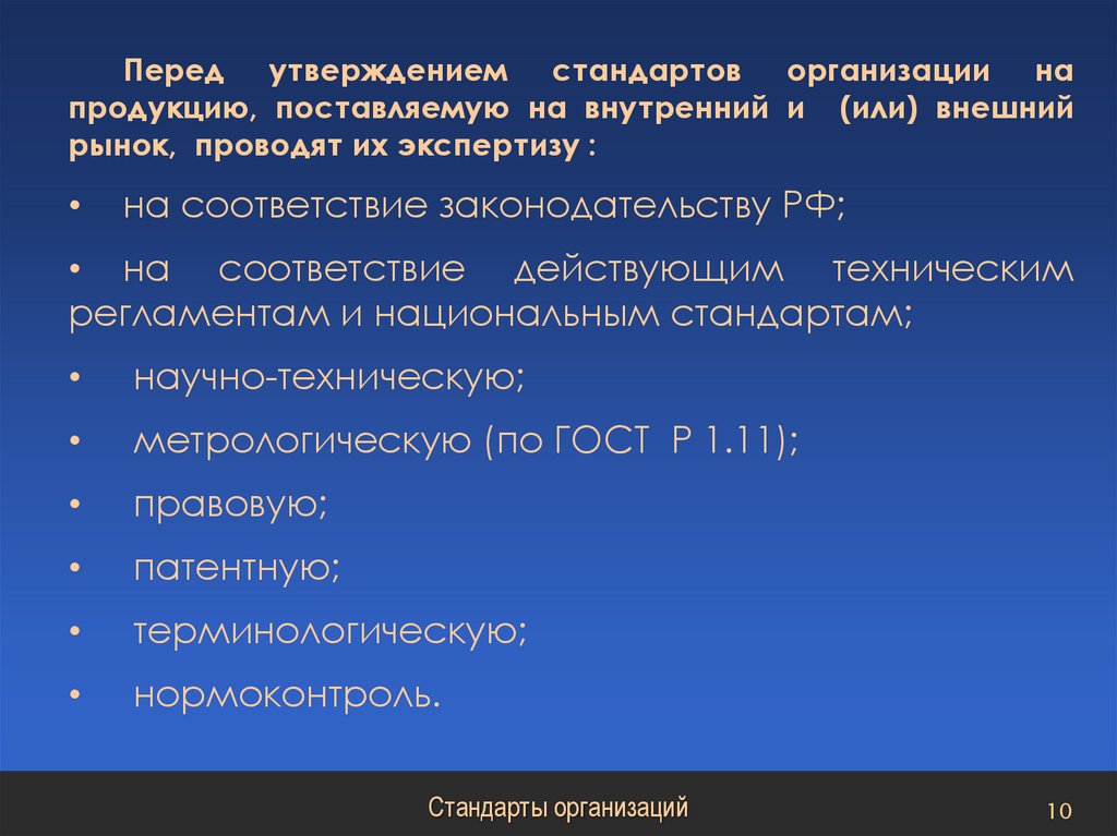 Перед утверждением стандартов организации напродукцию, поставляемую на внутренний и (или) внешний