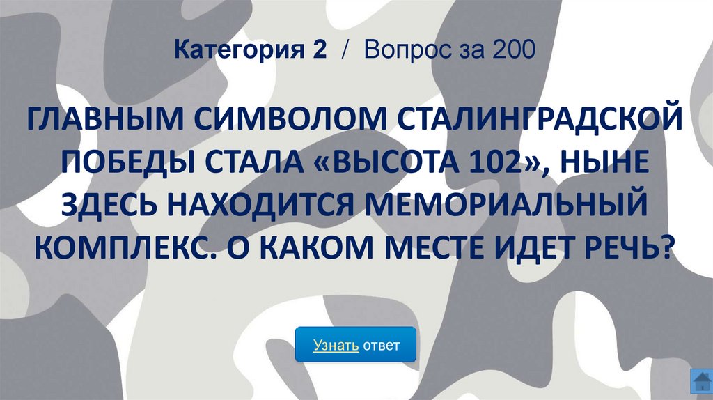 Категория 2 / Вопрос за 200ГЛАВНЫМ СИМВОЛОМ СТАЛИНГРАДСКОЙ