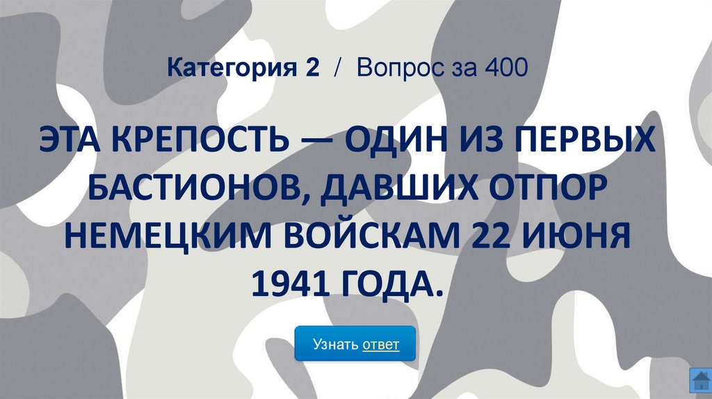 БРЕСТСКАЯ КРЕПОСТЬКатегория 2 / Вопрос за 400