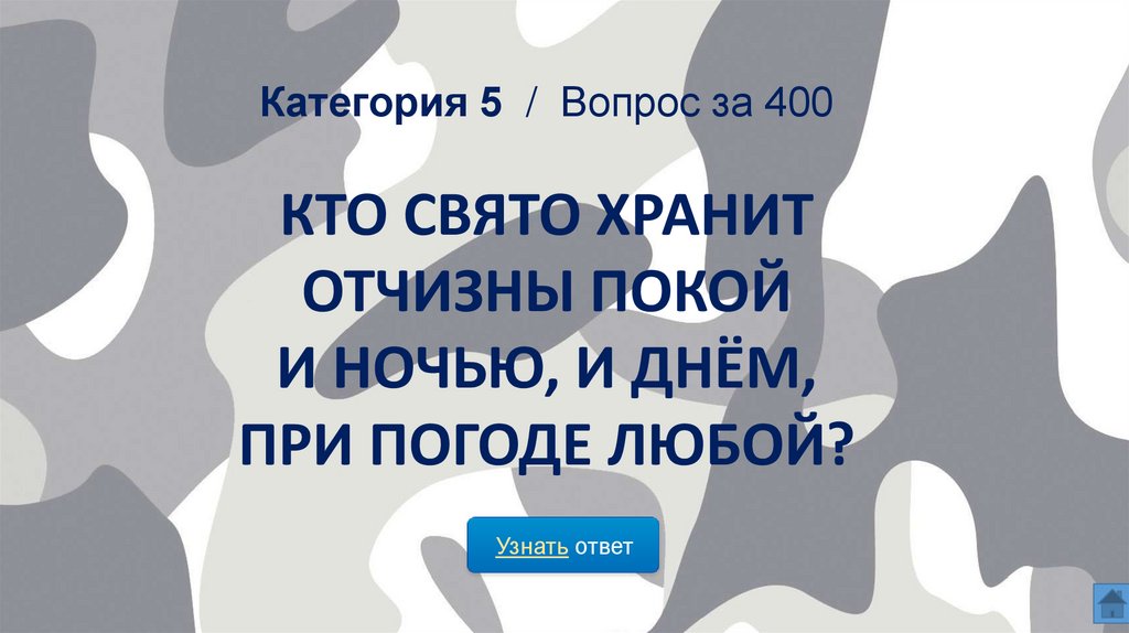 ПОГРАНИЧНИККатегория 5 / Вопрос за 400