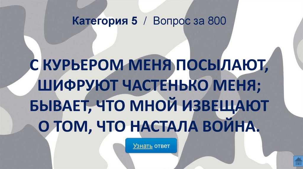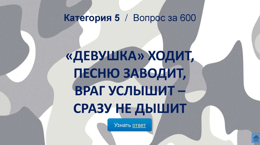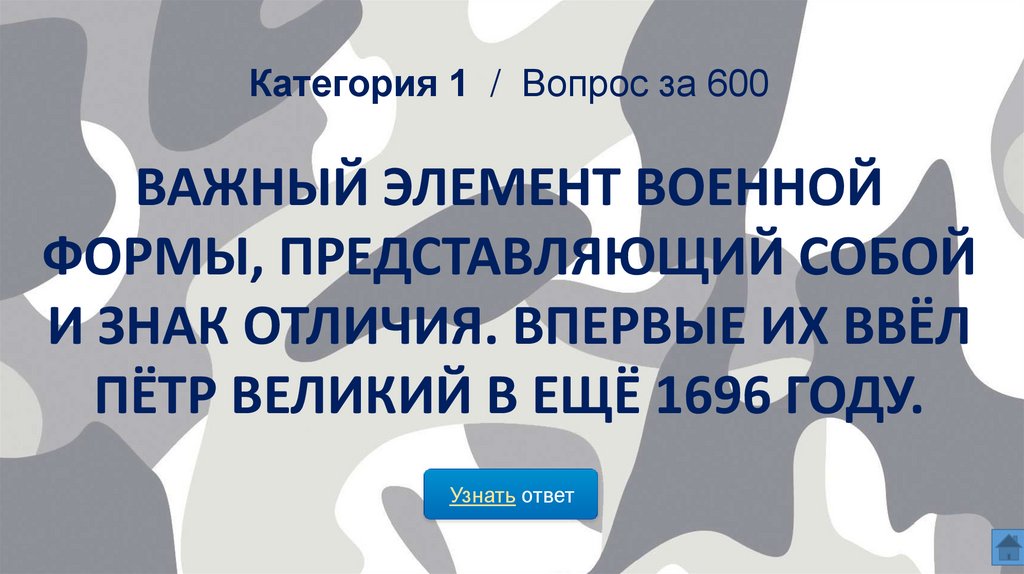 Категория 1 / Вопрос за 600ВАЖНЫЙ ЭЛЕМЕНТ ВОЕННОЙ