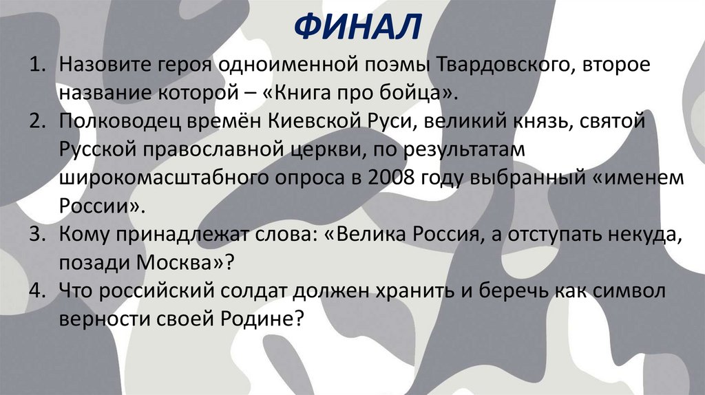 ФИНАЛ1. Назовите героя одноименной поэмы Твардовского, второе