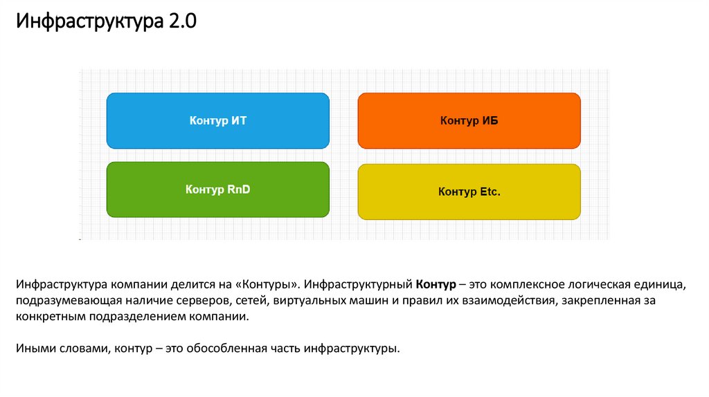 Инфраструктура 2.0Инфраструктура компании делится на «Контуры». Инфраструктурный Контур – это комплексное логическая единица,
