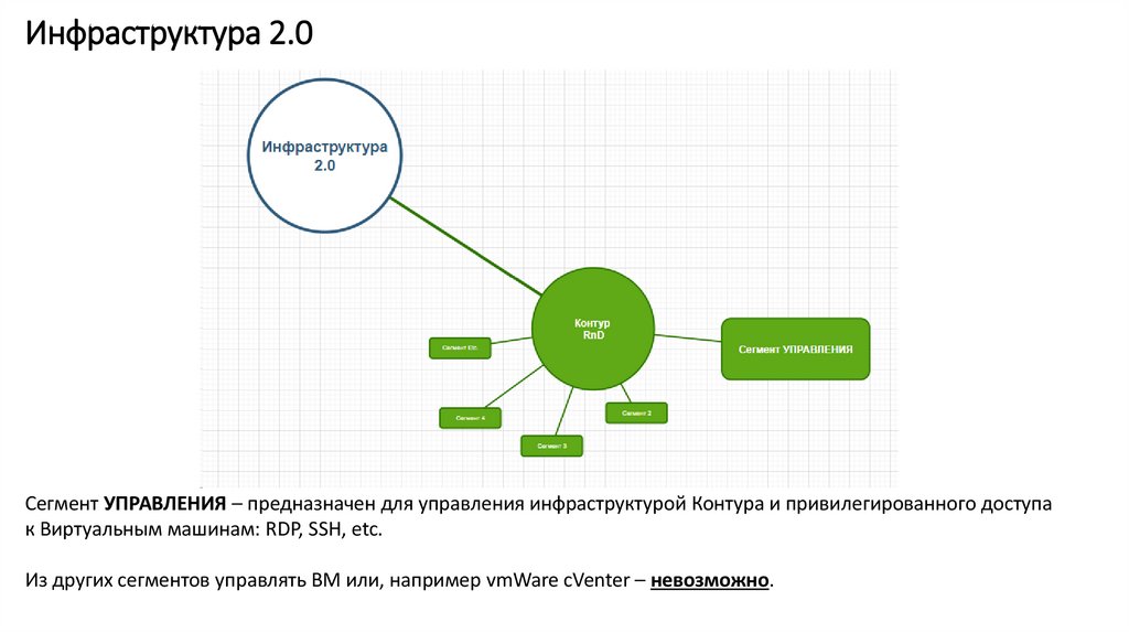 Инфраструктура 2.0Сегмент УПРАВЛЕНИЯ – предназначен для управления инфраструктурой Контура и привилегированного доступа