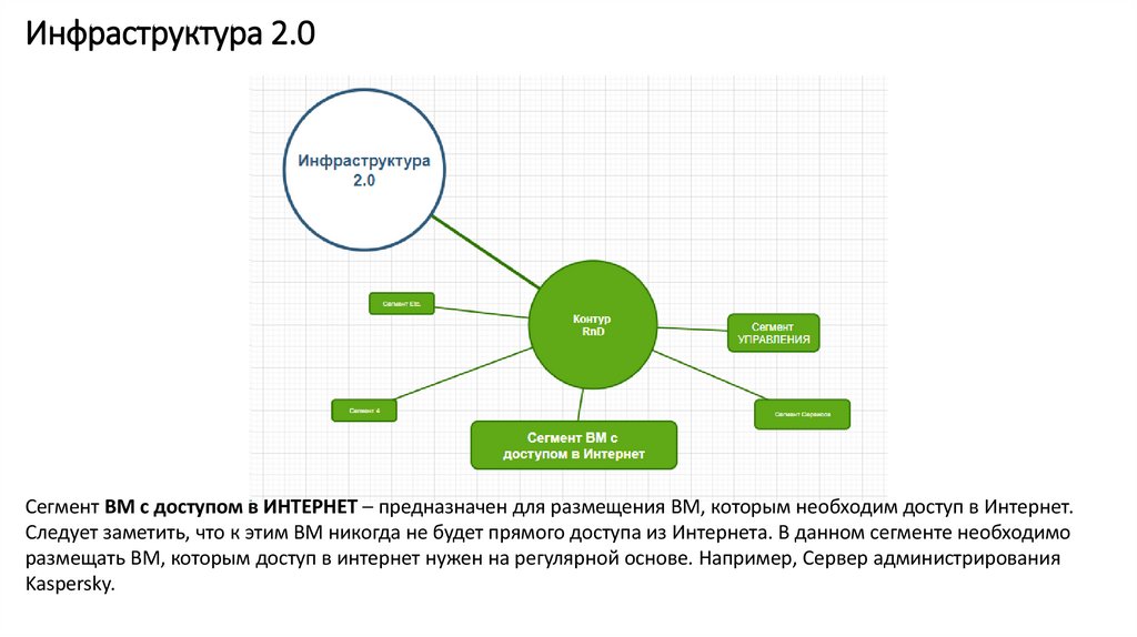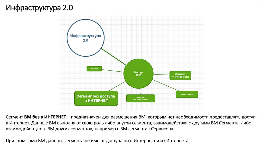 Инфраструктура 2.0Сегмент ВМ без в ИНТЕРНЕТ – предназначен для размещения ВМ, которым нет необходимости предоставлять доступ