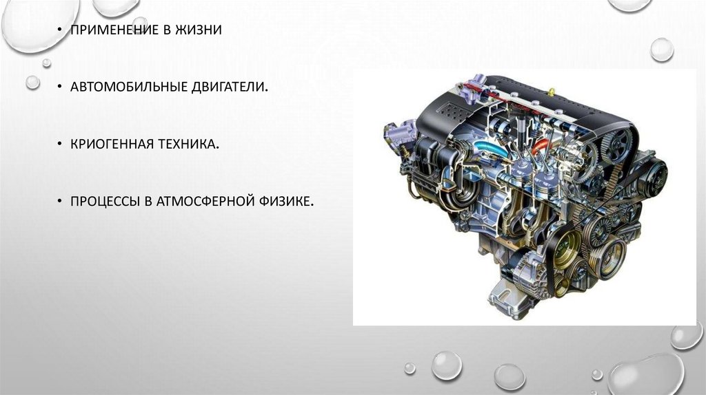 • ПРИМЕНЕНИЕ В ЖИЗНИ• АВТОМОБИЛЬНЫЕ ДВИГАТЕЛИ.