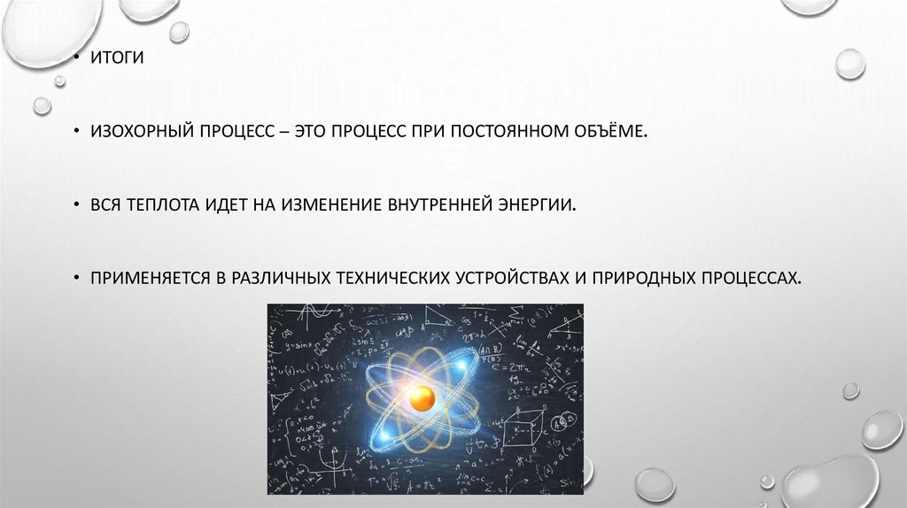 • ИТОГИ• ИЗОХОРНЫЙ ПРОЦЕСС – ЭТО ПРОЦЕСС ПРИ ПОСТОЯННОМ ОБЪЁМЕ.