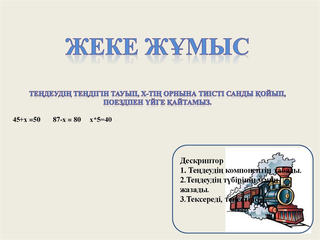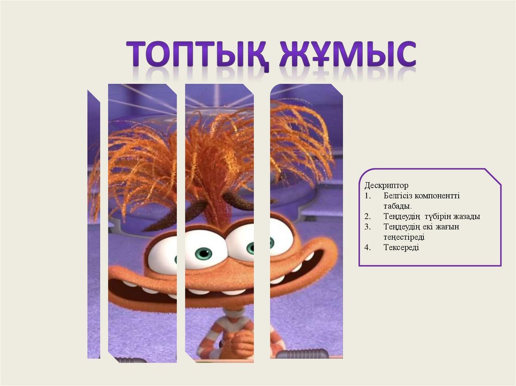 1. Теңдеудің компонентiн табады.
