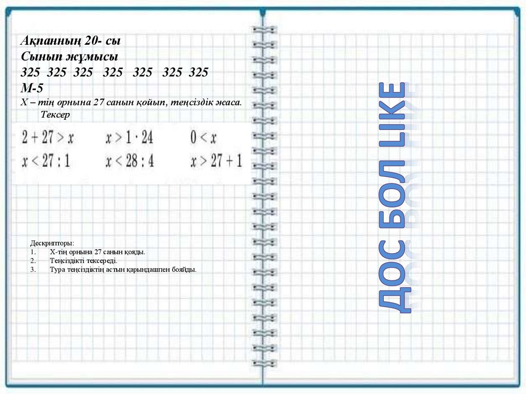 Х – тің орнына 27 санын қойып, теңсіздік жаса.