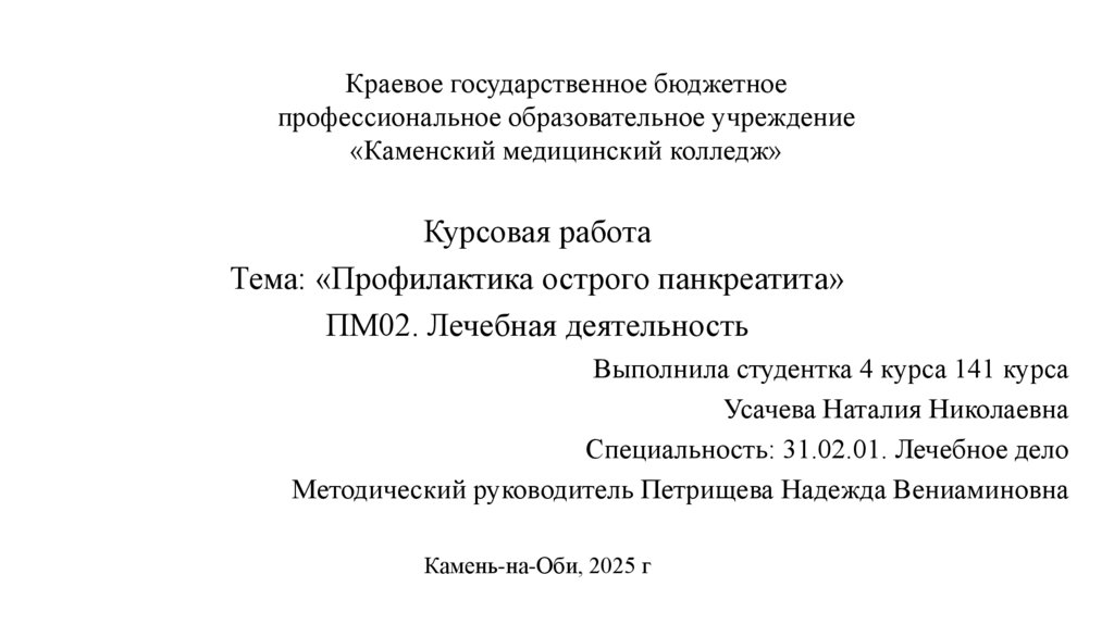 пациентов с острым панкреатитом в условиях КГБУЗ «Баевская ЦРБ».