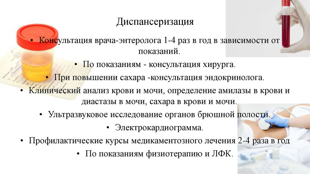Диспансеризация• Консультация врача-энтеролога 1-4 раз в год в зависимости от