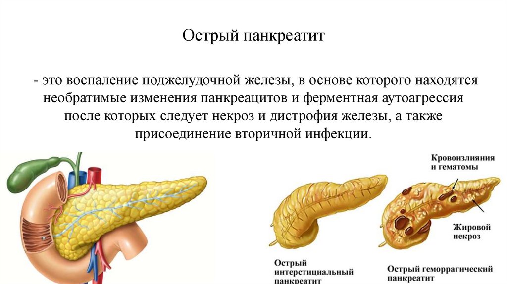 Острый панкреатит- это воспаление поджелудочной железы, в основе которого находятся