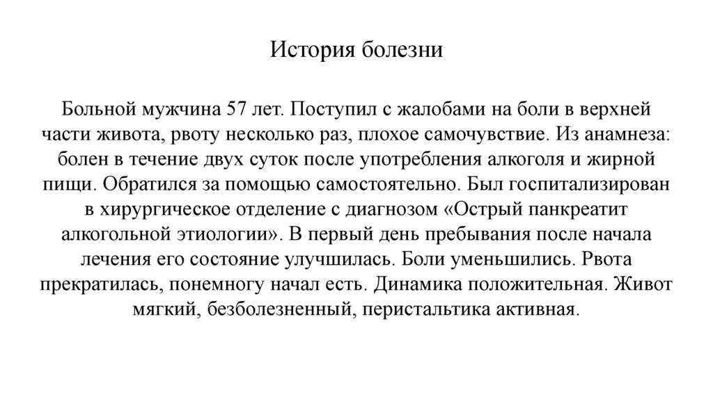 История болезниБольной мужчина 57 лет. Поступил с жалобами на боли в верхней