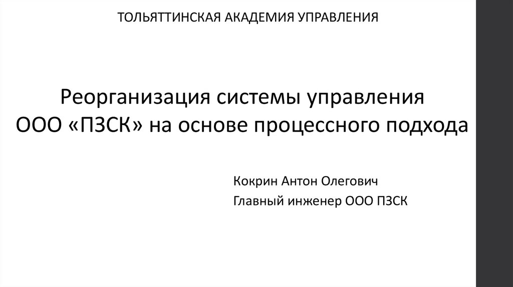 ТОЛЬЯТТИНСКАЯ АКАДЕМИЯ УПРАВЛЕНИЯРеорганизация системы управления