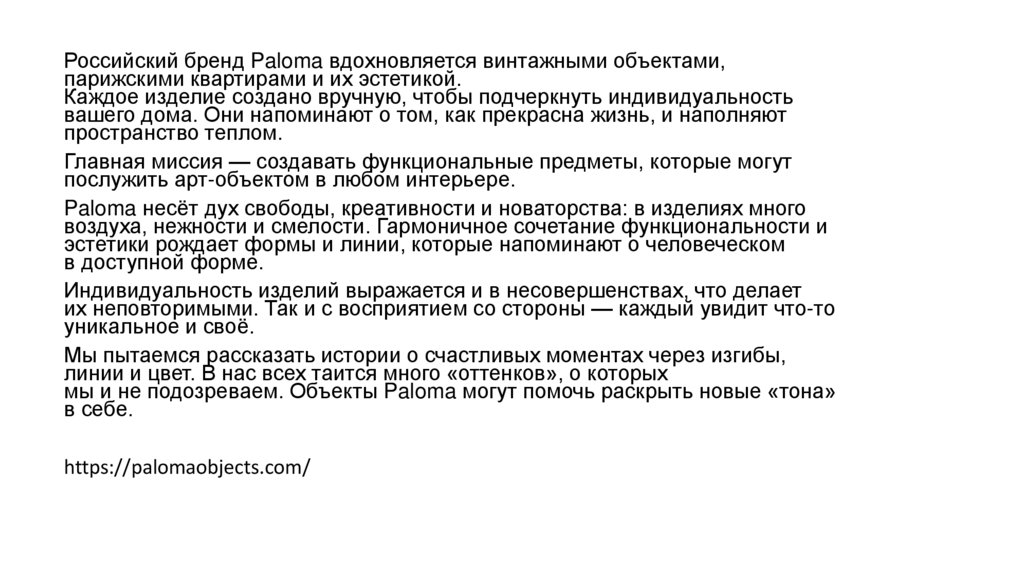 Российский бренд Paloma вдохновляется винтажными объектами,парижскими квартирами и их эстетикой.