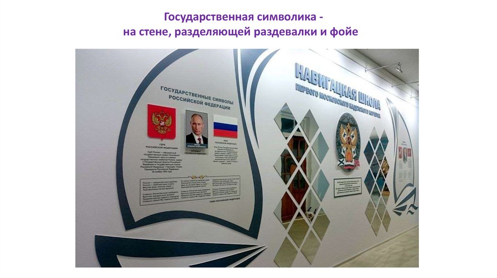 Государственная символика на стене, разделяющей раздевалки и фойе3.