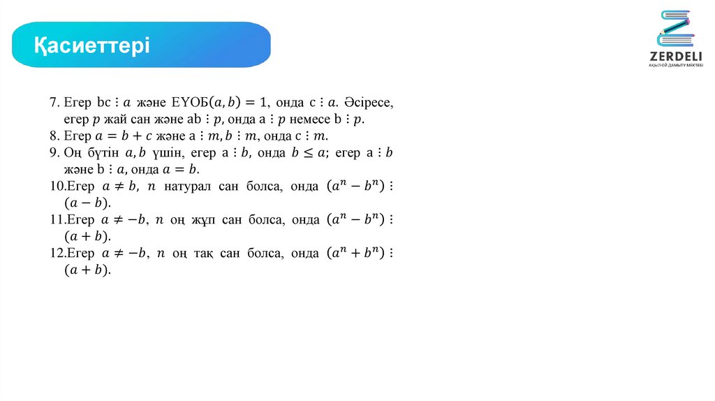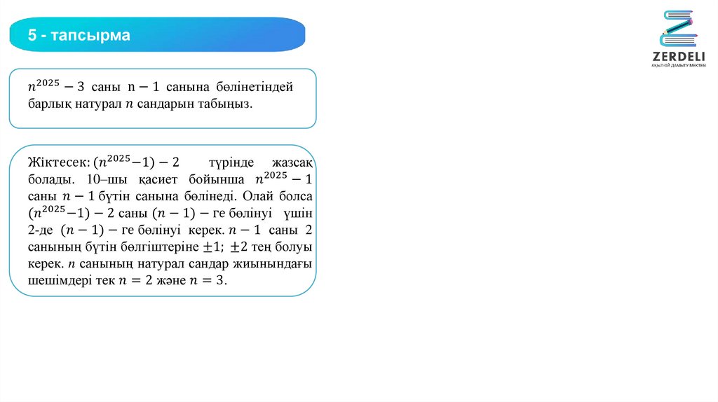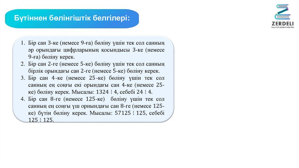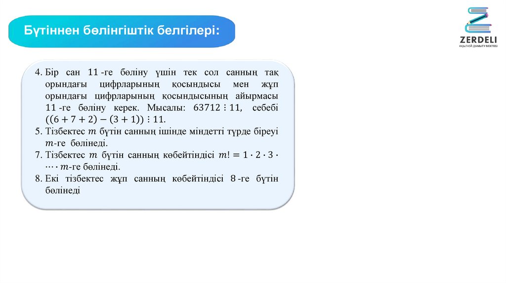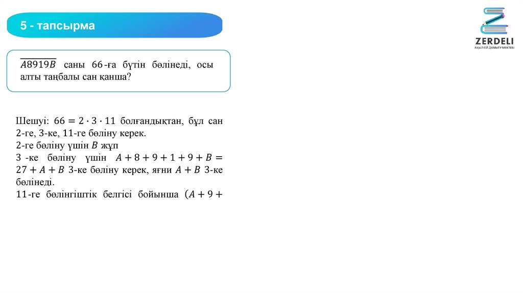 Математикадан олимпиада сабағы. Бүтін бөлінгіштің және оның белгілері