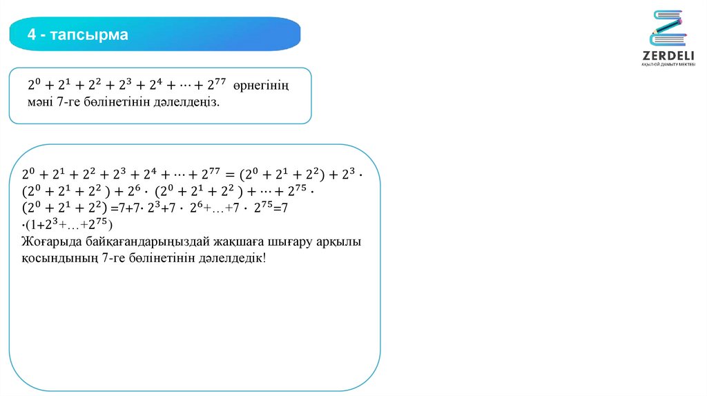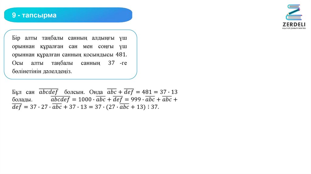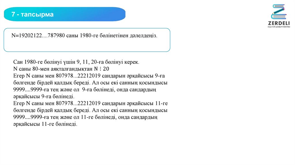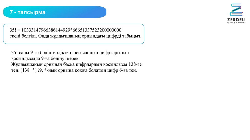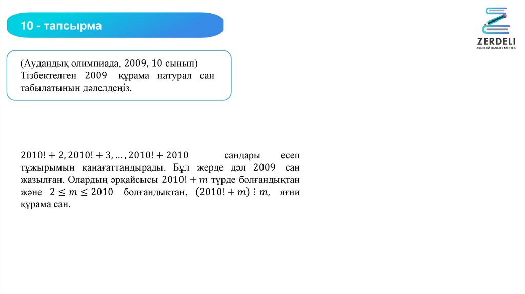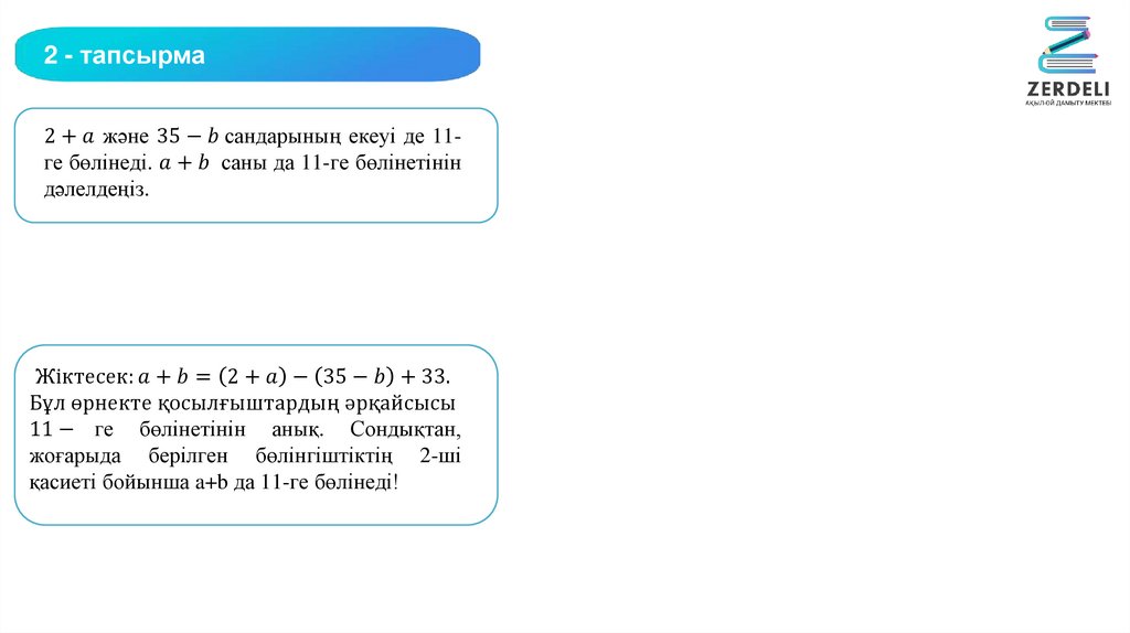 Математикадан олимпиада сабағы. Бүтін бөлінгіштің және оның белгілері