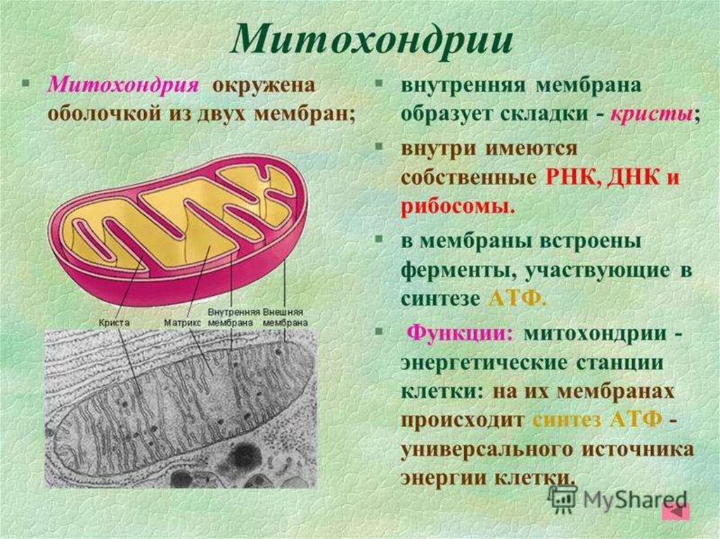 Митохондрии• Митохондрии являются прямыми