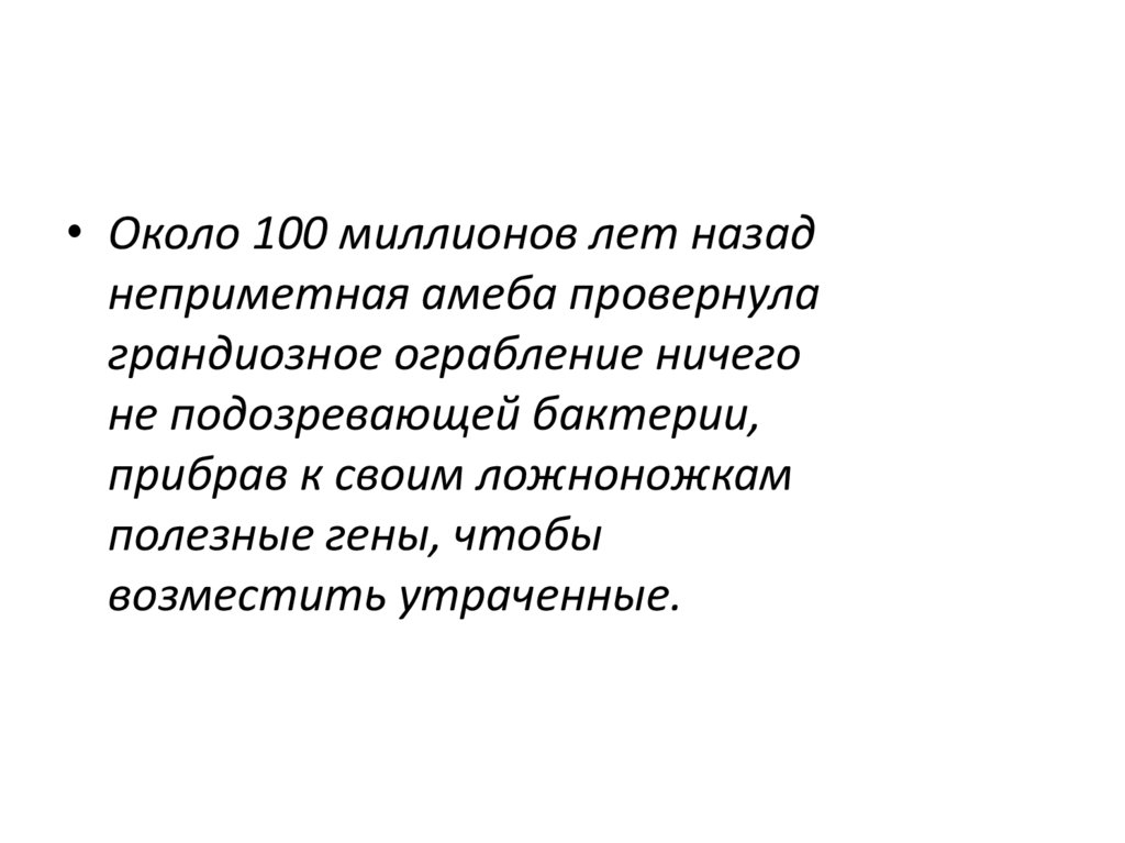 • Около 100 миллионов лет назаднеприметная амеба провернула