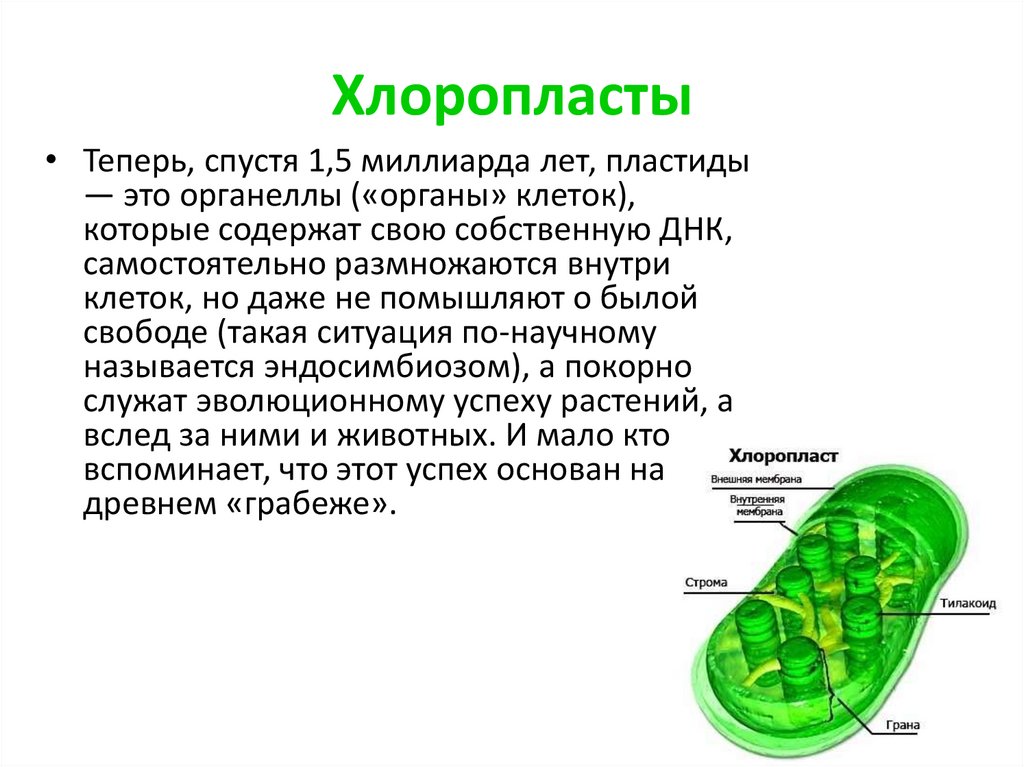 Хлоропласты• Теперь, спустя 1,5 миллиарда лет, пластиды