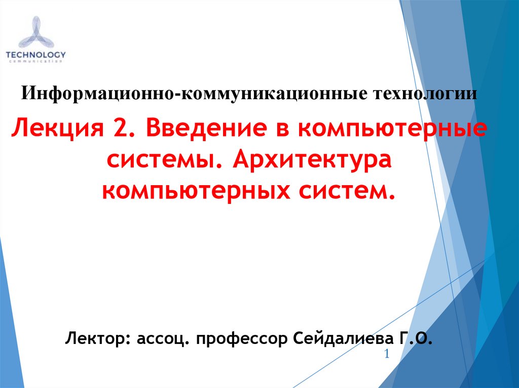 Информационно-коммуникационные технологииЛекция 2. Введение в компьютерные