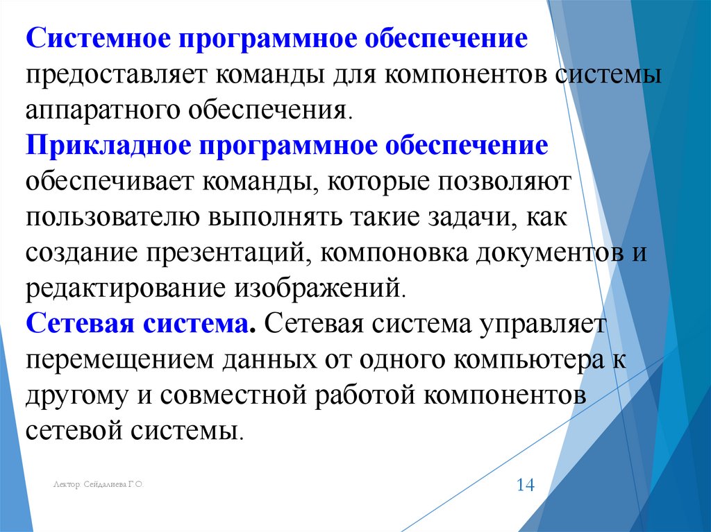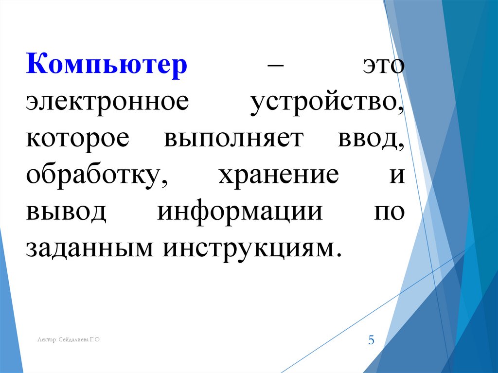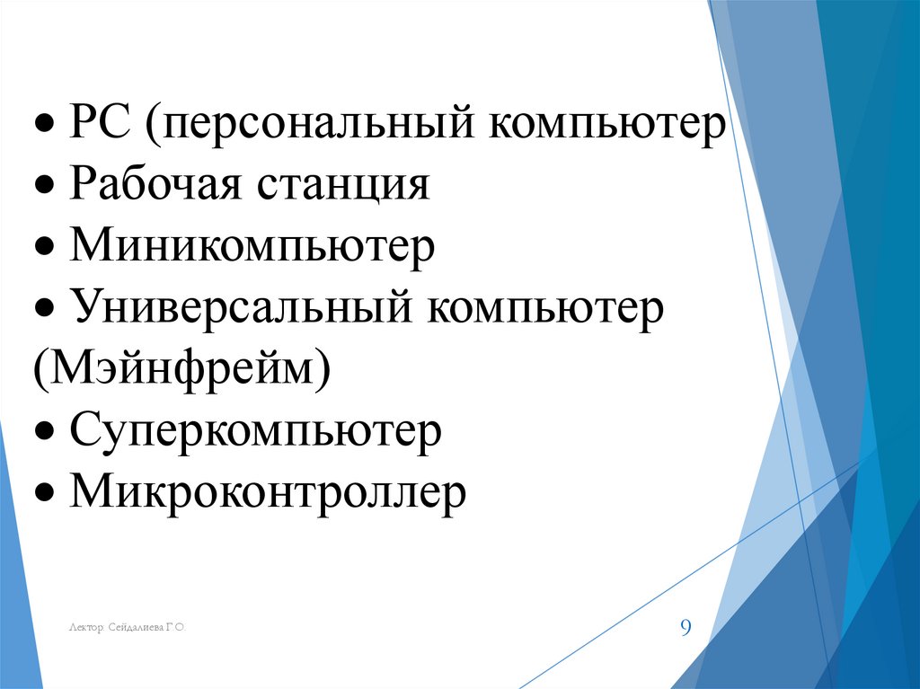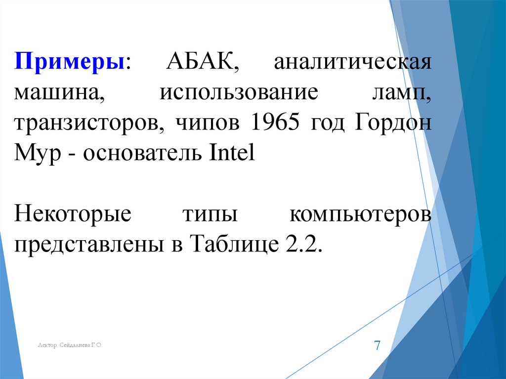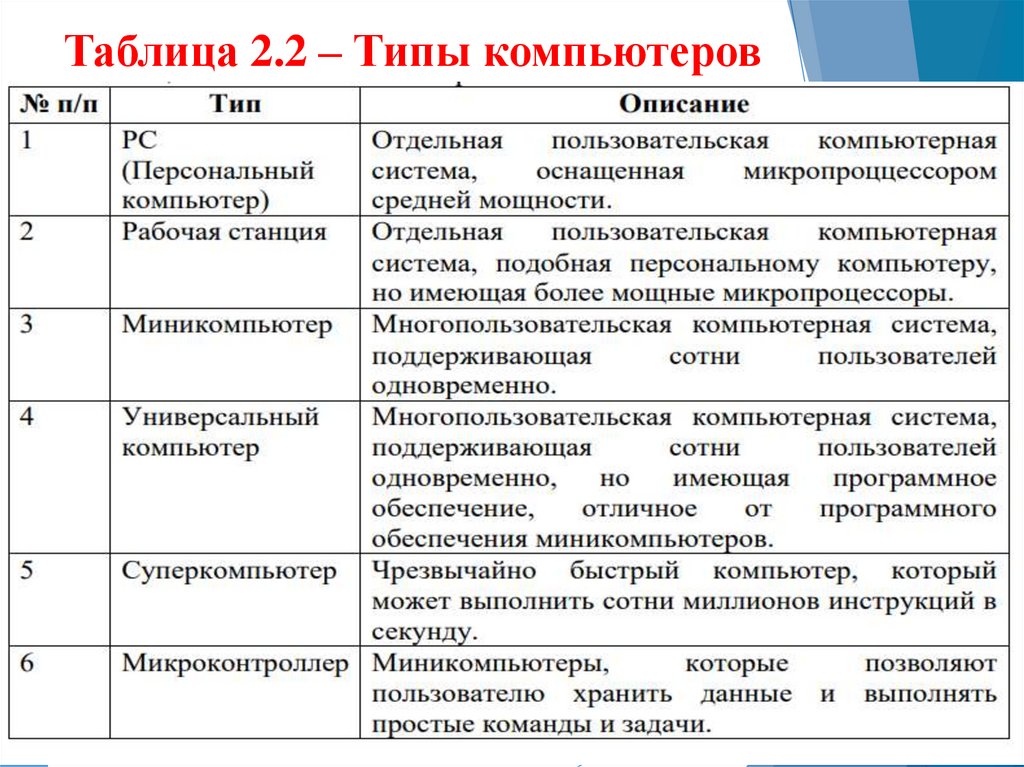 Таблица 2.2 – Типы компьютеровЛектор: Сейдалиева Г.О.