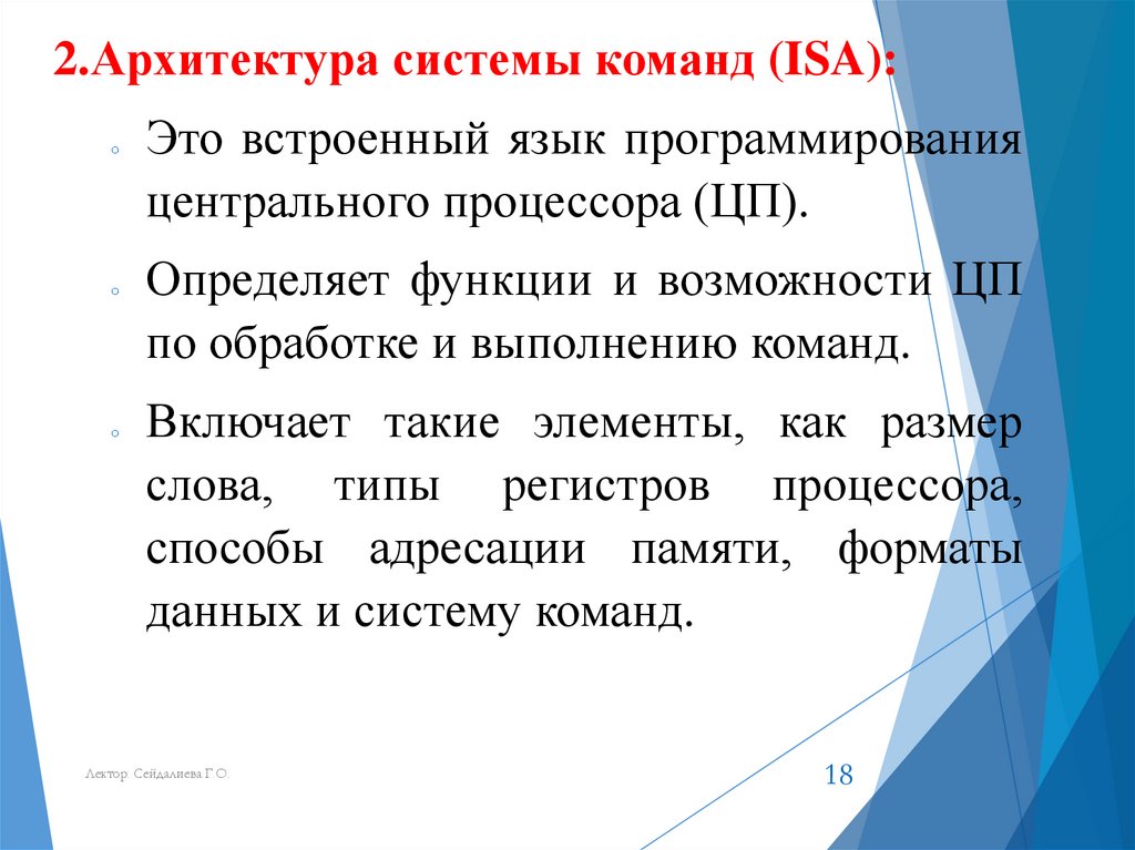 Введение в компьютерные системы. Архитектура компьютерных систем. Лекция 2