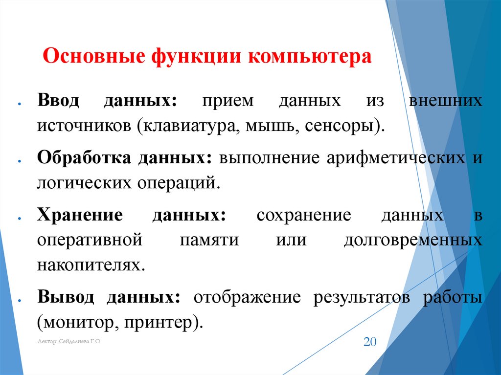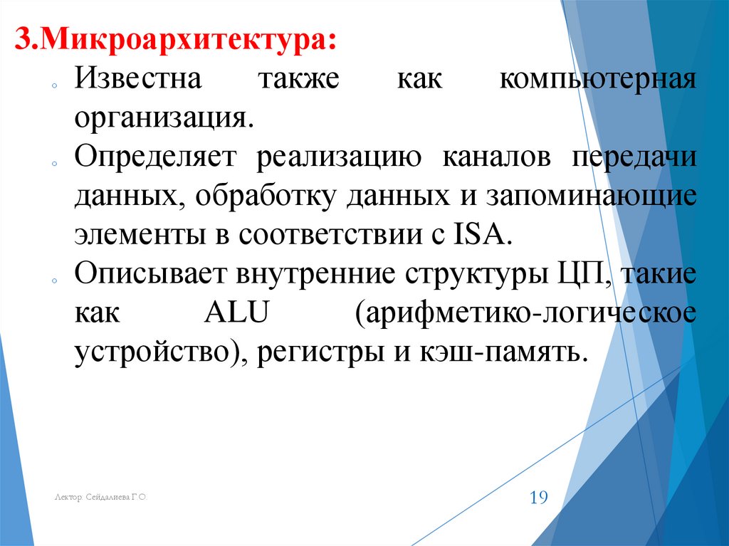Лектор: ассоц. профессор Сейдалиева Г.О.
