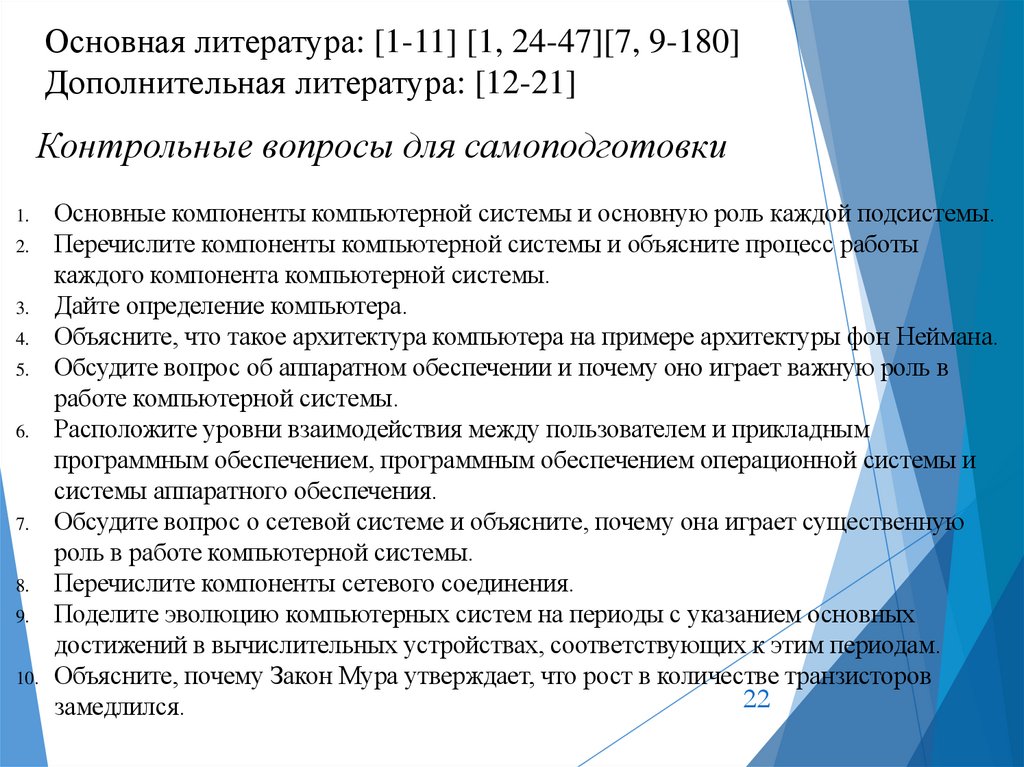 Основная литература: [1-11] [1, 24-47][7, 9-180]Дополнительная литература: [12-21]