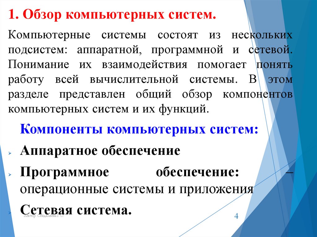 1. Обзор компьютерных систем.Компьютерные системы состоят из нескольких