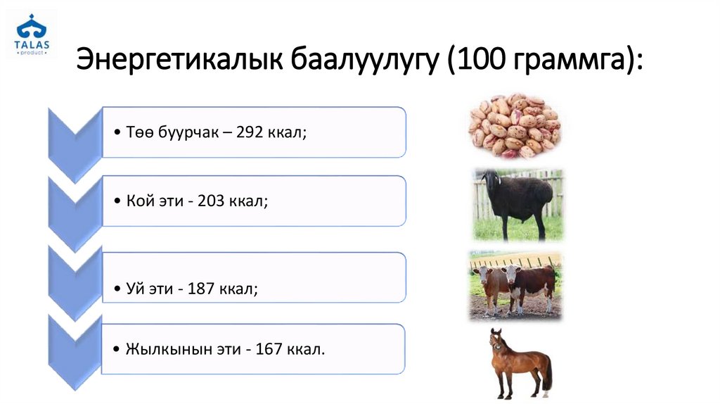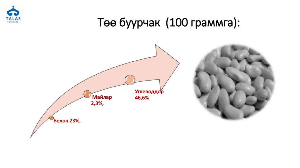 Энергетикалык баалуулугу (100 граммга):• Төө буурчак – 292 ккал;