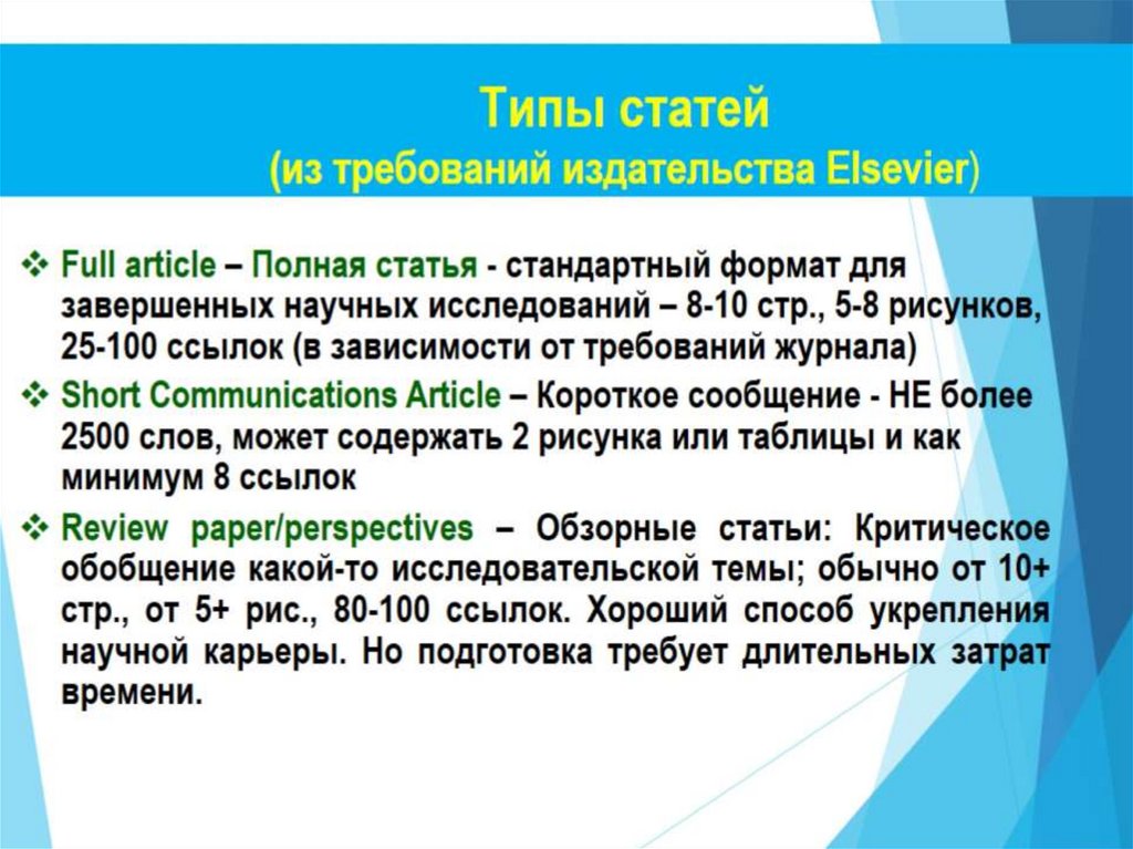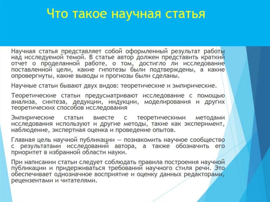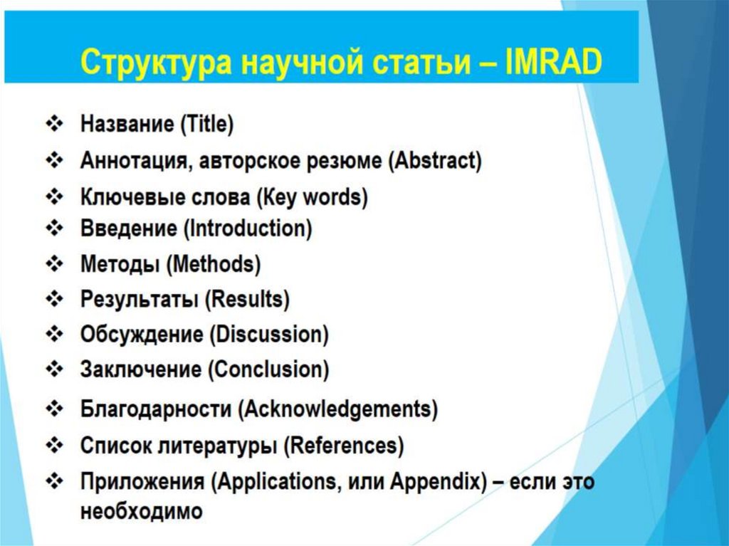 Структура научной статьи. Виды обзорных статей. Тезисы