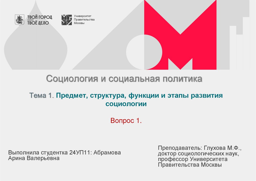 Предмет, структура, функции и этапы развития социологии. Тема 1