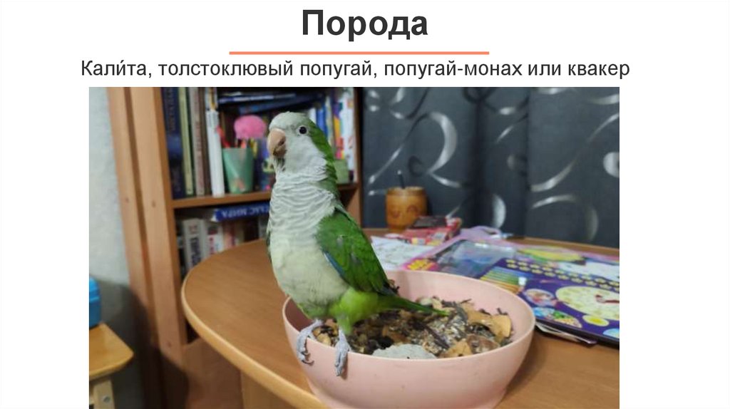 Кали́та, толстоклювый попугай, попугай-монах или квакер