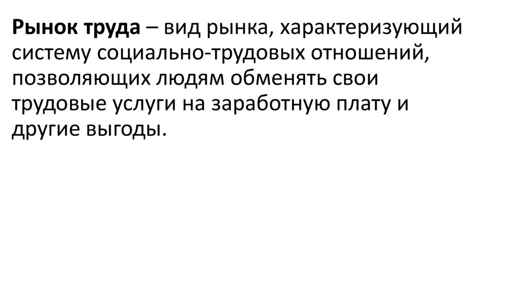Рынок труда – вид рынка, характеризующийсистему социально-трудовых отношений,
