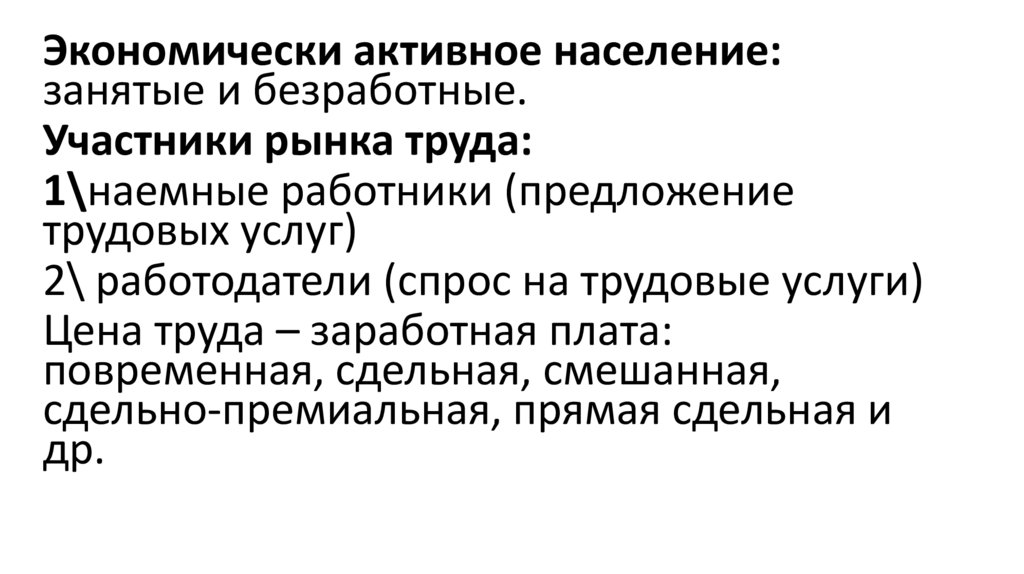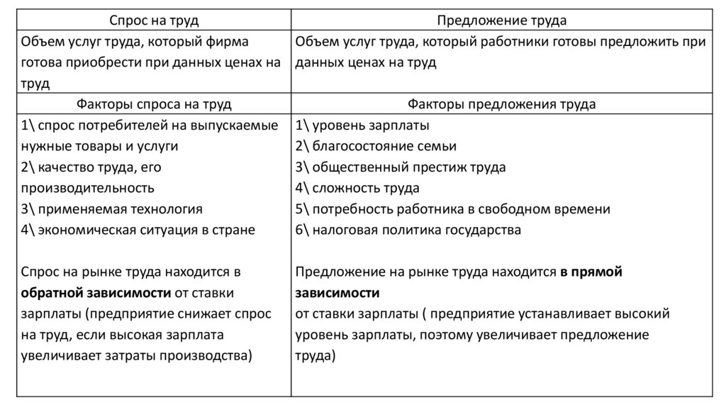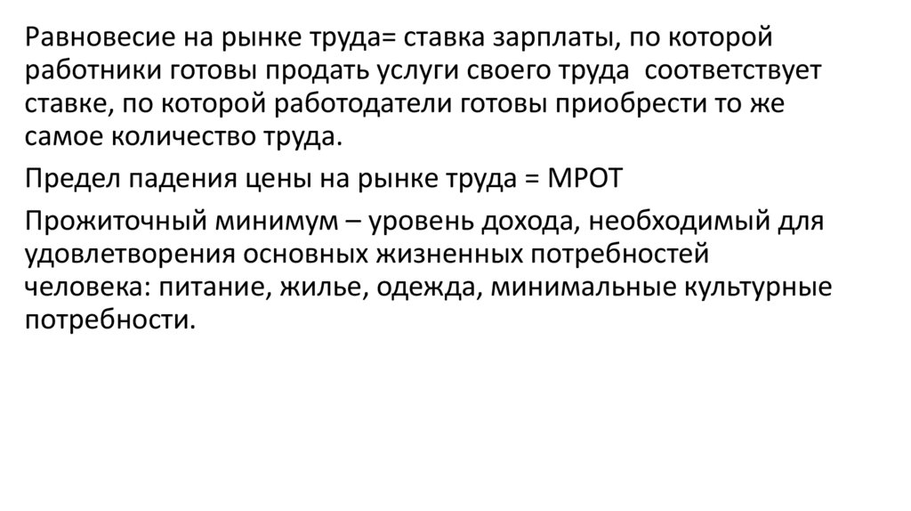 Равновесие на рынке труда= ставка зарплаты, по которойработники готовы продать услуги своего труда соответствует