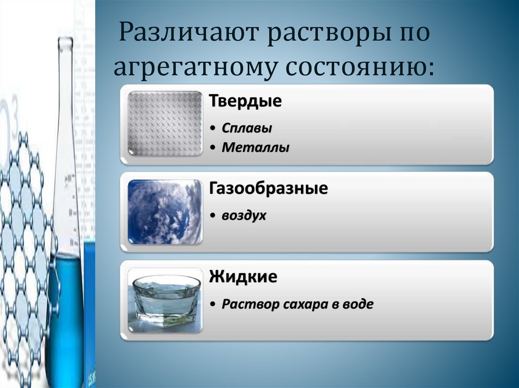Различают растворы поагрегатному состоянию: