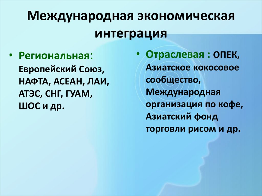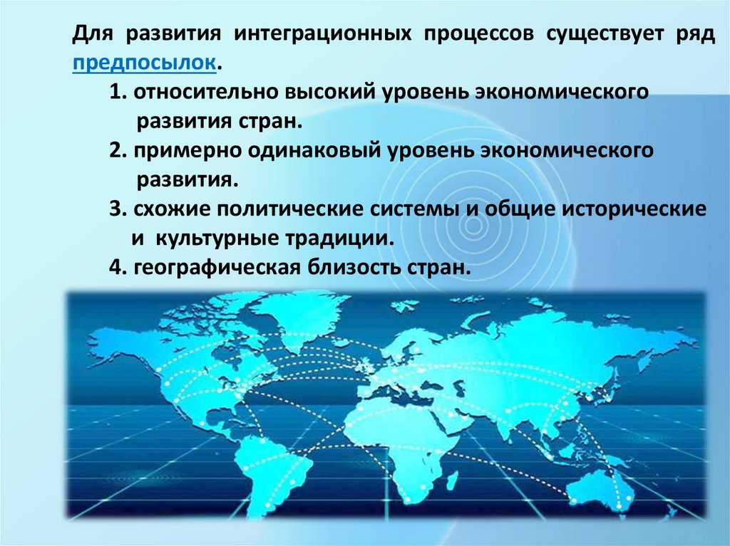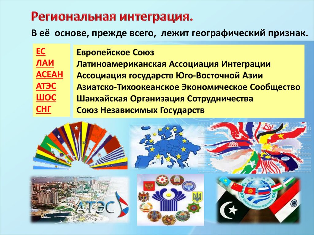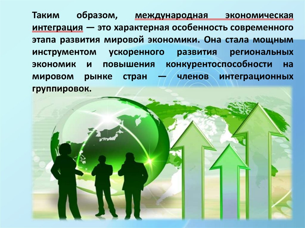 Международная экономическая интеграция — процессразвития глубоких и устойчивых взаимосвязей между