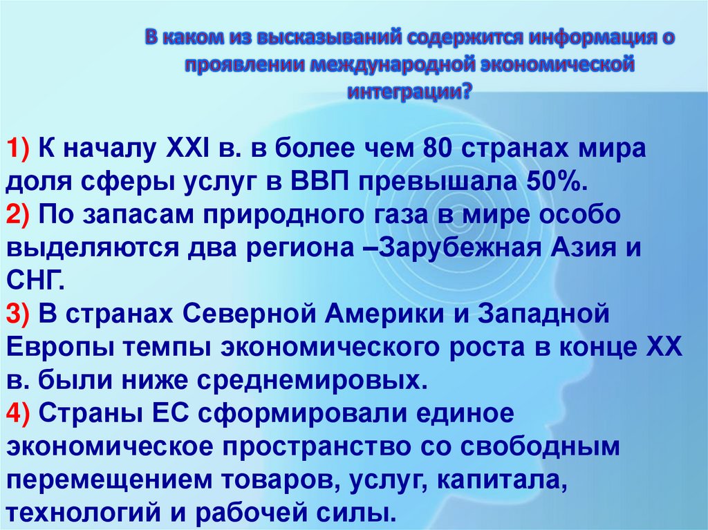 1) К началу ХХI в. в более чем 80 странах мирадоля сферы услуг в ВВП превышала 50%.