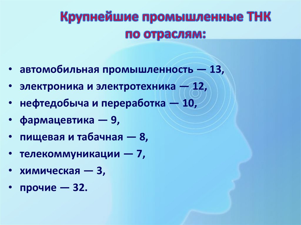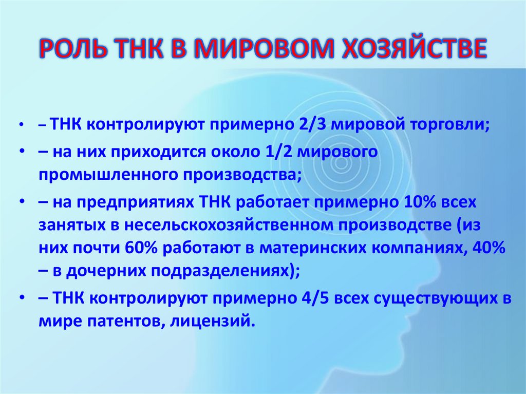 • – ТНК контролируют примерно 2/3 мировой торговли;• – на них приходится около 1/2 мирового
