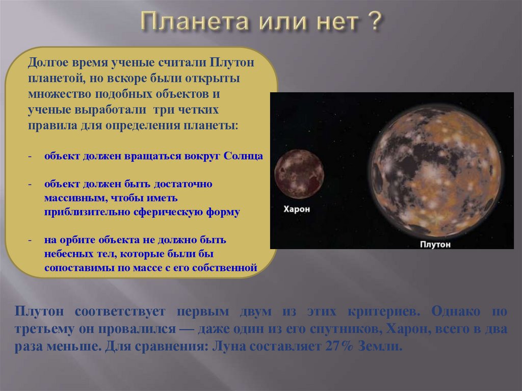 Плутон соответствует первым двум из этих критериев. Однако по