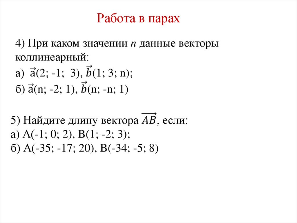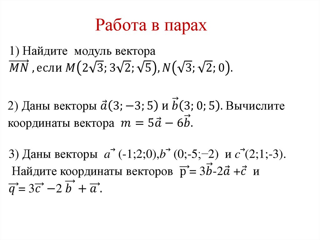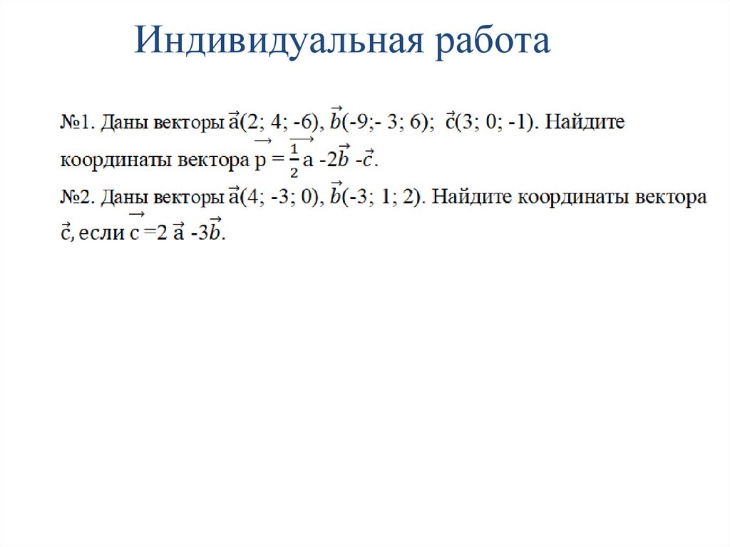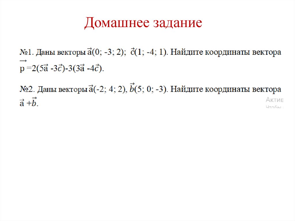 Сложение и вычитание векторов в координатах, умножение вектора на число в координатах