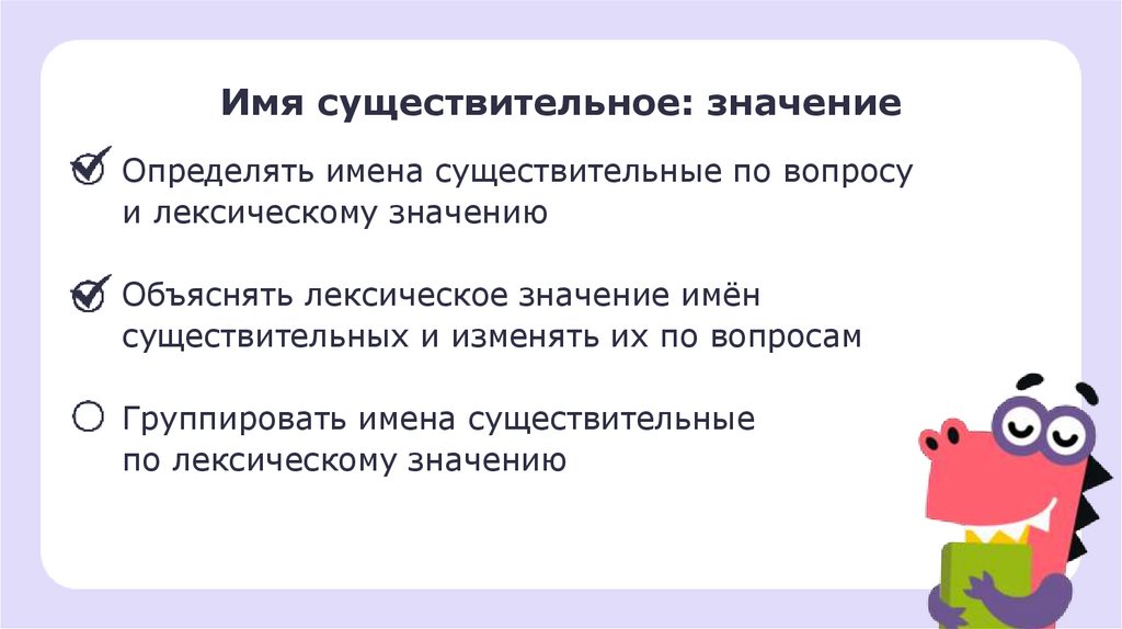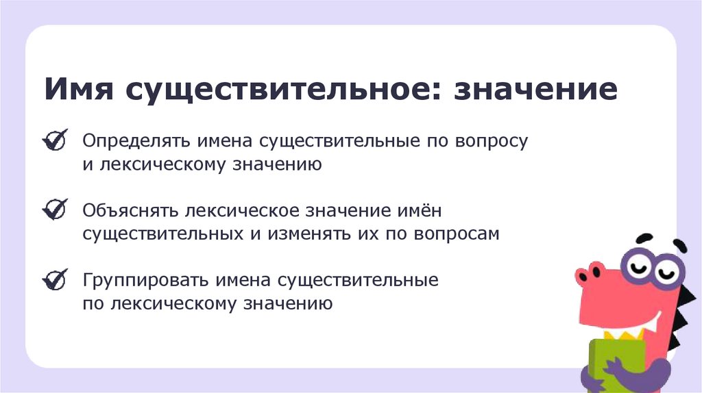 Имя существительное: значениеОпределять имена существительные по вопросу