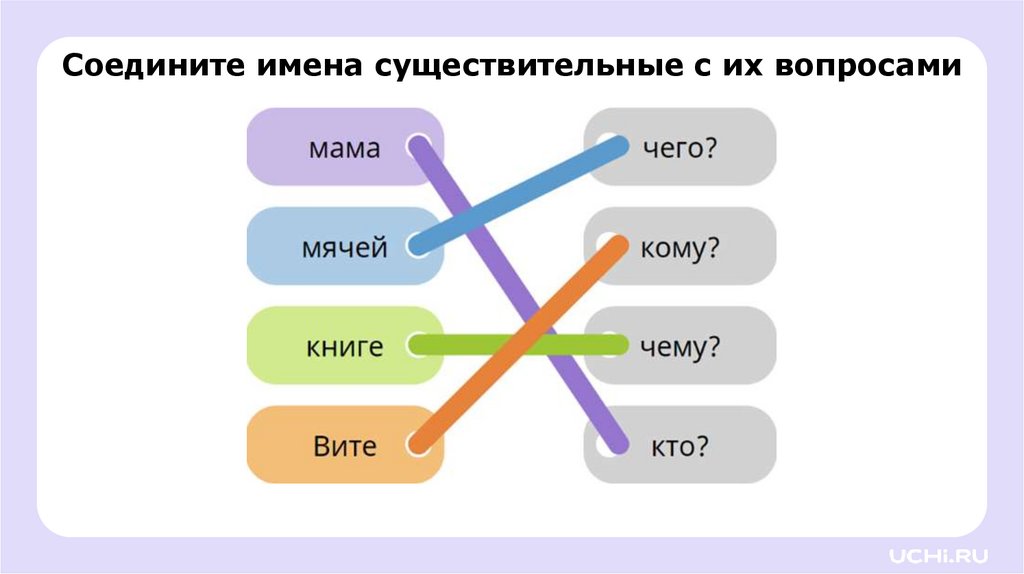 Соедините имена существительные с их вопросами4.